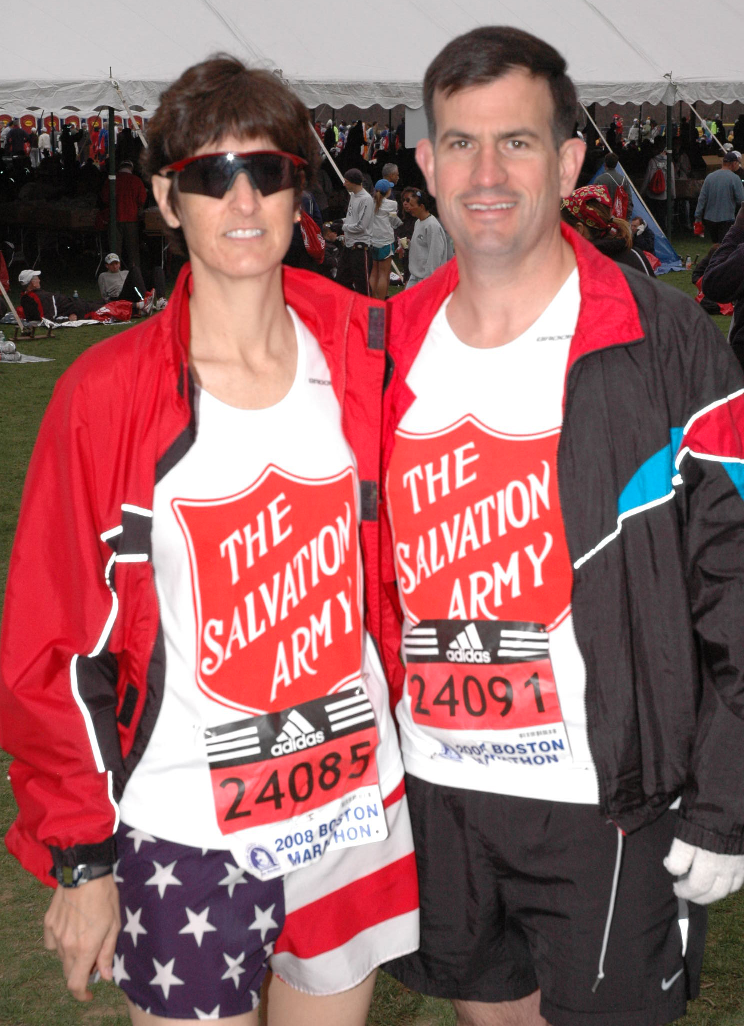 MINOT AIR FORCE BASE, N.D. -- Col. Parker Northrup, 5th Operations Group commander, and wife, Lt. Col. Carol Northrup, National Defense Fellow at Boston College, pose for a photo prior to participating in the 2008 Boston Marathon in Boston, Mass. (courtesy photo)
