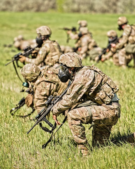 Defenders from the 791st Missile Security Forces Squadron participated in annual tactical training at Minot Air Force Base, N.D., May 23, 2016. Training stations allowed SF members to practice small unit combat tactics, employ inert smoke grenades and perform casualty care and evacuation. These exercises were just a small portion of the tactical maneuver training SF members receive annually. (U.S. Air Force photo/Airman 1st Class J.T. Armstrong)