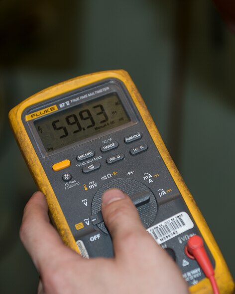 A member 91st Missile Maintenance Squadron facilities maintenance section verifies diesel hertz on a multi-meter at a launch facility near Minot Air Force Base, North Dakota, July 17, 2018. The annual code change requires maximum effort across the wing. (U.S. Air Force photo by Senior Airman Jonathan McElderry)