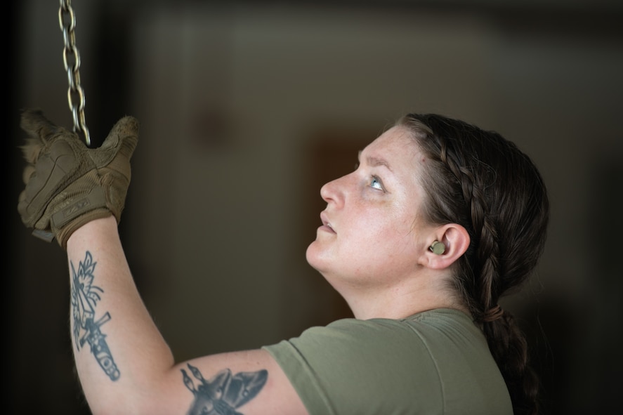 U.S. Air Force Staff Sgt. Janie Maitland, 5th Logistics Readiness Squadron non-commissioned officer in charge of scheduling, opens the dock gate at Minot Air Force Base, North Dakota, Aug. 3, 2023. The 5th LRS mission is to professionally, proactively, and proficiently provide exceptional logistics readiness to assist the MAFB mission. (U.S. Air Force photo by Trust Tate)