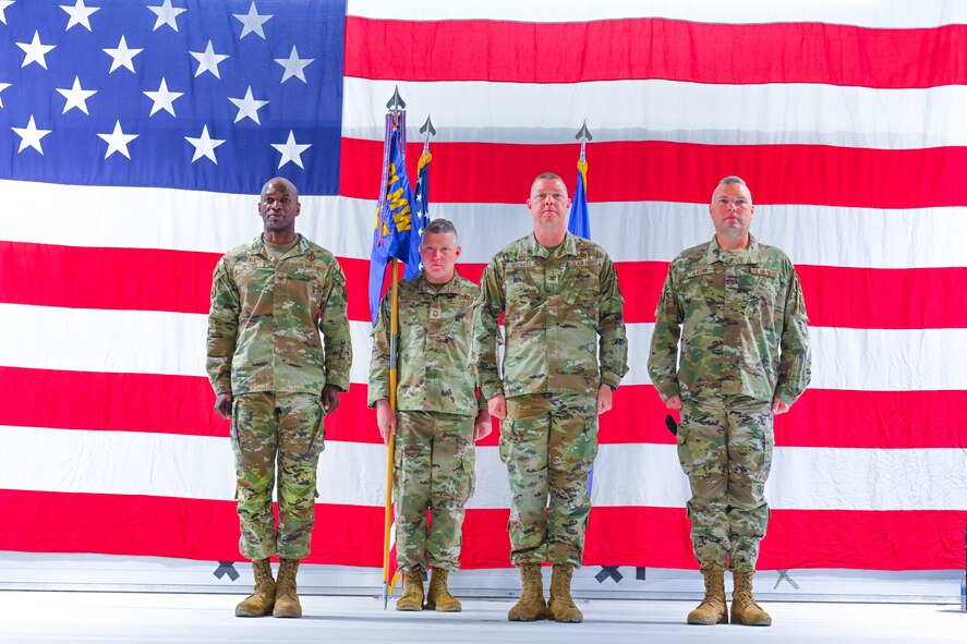 U.S. Air Force Col. Anthony McCarty relinquishes command of the 91st Security Forces Group to Col. James Slaton during a change of command ceremony at Minot Air Force Base, North Dakota, June 17, 2024. The change of command ceremony brought Team Minot, family and friends together to welcome the new commander.