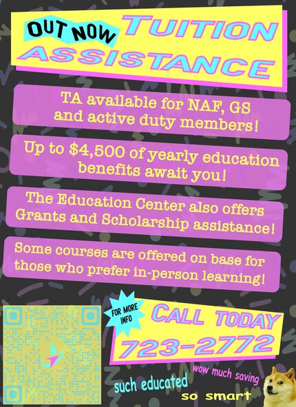 A graphic illustrating tuition assistance program and education center benefits on Minot Air Force Base, North Dakota. ( U.S. Air Force graphic by Senior Airman Alexander Nottingham)