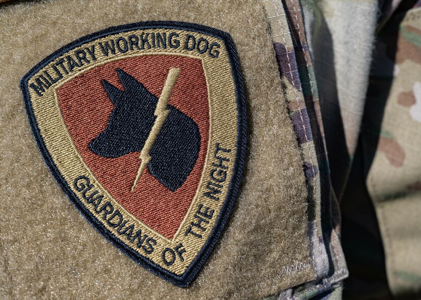 A 5th Security Forces Squadron military working dog patch is worn by U.S. Air Force Staff Sgt. Sandra Ohta-Jones Harris, 5SFS military working dog handler, at Minot Air Force Base, North Dakota, April 21, 2025. The 5SFS’s military working dogs are trained to support a variety of operations, including drug detection, explosive ordnance detection and security patrols. (U.S. Air Force photo by Senior Airman Kyle Wilson)
