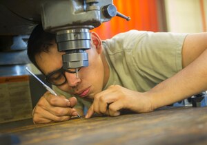 Metals technicians from the 5th Maintenance Squadron work in their shop at Minot Air Force Base, N.D., June 29, 2016. The unit creates and maintains essential parts for aircraft, equipment and weapons systems. (U.S. Air Force photo/Senior Airman Apryl Hall)