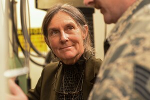 Retired Brig. Gen. Rhonda Cornum, a former U.S. Army flight surgeon, visits with Airmen from the 791st Maintenance Squadron at a launch facility training site at Minot Air Force Base, N.D., May 24, 2016. During her visit, Cornum visited with 91st Missile Wing and 5th Bomb Wing Airmen to give a