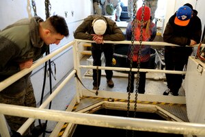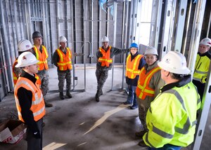 Base leadership tours the new temporary lodging facility site, currently under construction at Minot Air Force Base, N.D., Jan. 20, 2016. The new facility will double the lodging capacity for Airmen and their families transitioning onto and off the base. Each unit in the facility will feature an