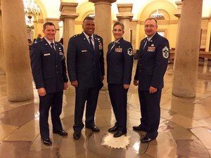 Senior Airman Kyle Abendroth, 5th Maintenance Squadron non-destructive inspection journeyman, checks for part deficiencies using chemical bathes, black lights and a magnetic particle machine at Minot Air Force Base, N.D., Aug. 24, 2015. NDI Airmen are able to use X-rays, chemical developers, black