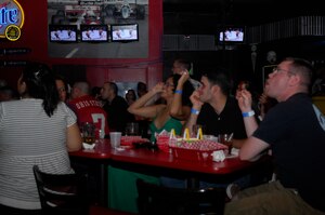 Members of Team Minot enjoyed a night of action-packed entertainment at J.R. Rockers here Aug. 9, courtesy of Air Combat Command. A large group of fight fans came together to watch the Ultimate Fighting Championship. The mixed martial art sport is normally a pay-per-view event. However, thanks to