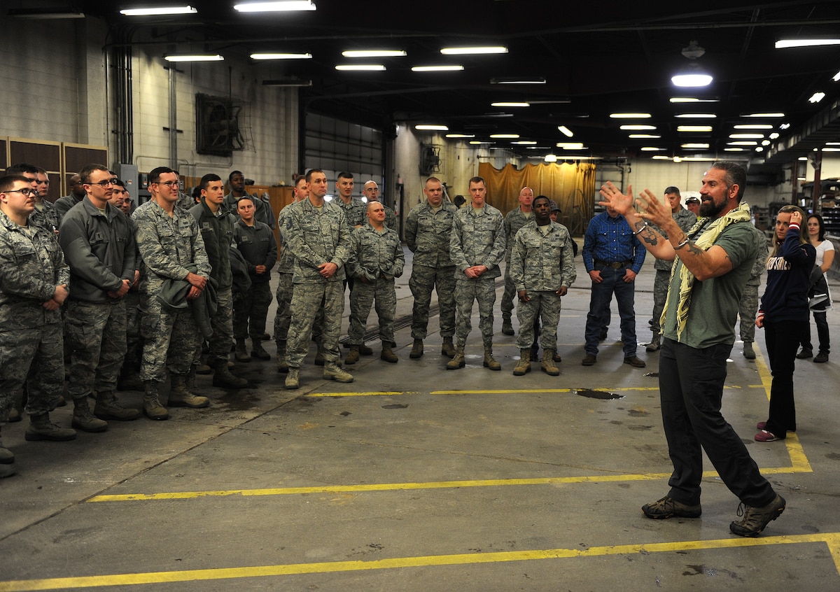The American 300 tour visited Minot Air Force Base Airmen, led by founder Robi Powers, and three special guest. Olympian and X-Games 3x silver medalist Erin Nemec, U.S. snowboard coach Cactus Nemec and U.S. Navy Seal (RET.) Mikal Vega, joined Powers in sharing their stories of failure and triumph throughout their careers, and the importance of teamwork and camaraderie. (U.S. Air Force photos/Senior Airman Kristoffer Kaubisch)