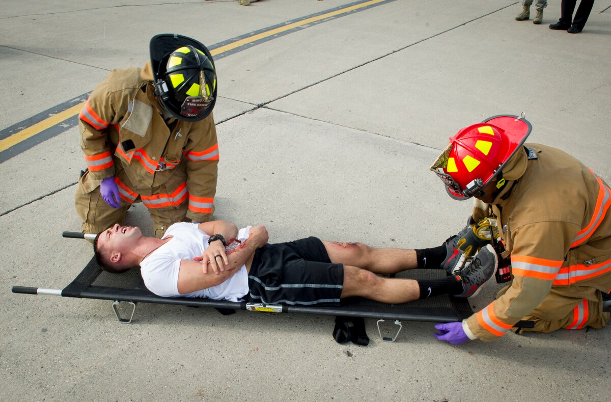 MARE tests emergency responders Published July 20, 2016 By Minot AFB Public Affairs Minot Air Force Base Public Affairs MINOT AIR FORCE BASE, N.D. -- Emergency response personnel assigned to Minot Air Force Base conducted a Major Accident Response Exercise July 15, 2016, in preparation for the upcoming Northern Neighbor’s Day Air Show scheduled for August 13. The training exercise simulated a UH-1N Huey accident with varying levels of injuries. Personnel conducted the drill to ensure they are ready for any aircraft emergencies. (U.S. Air Force photos/Senior Airman Apryl Hall/Senior Airman Sahara Fales)